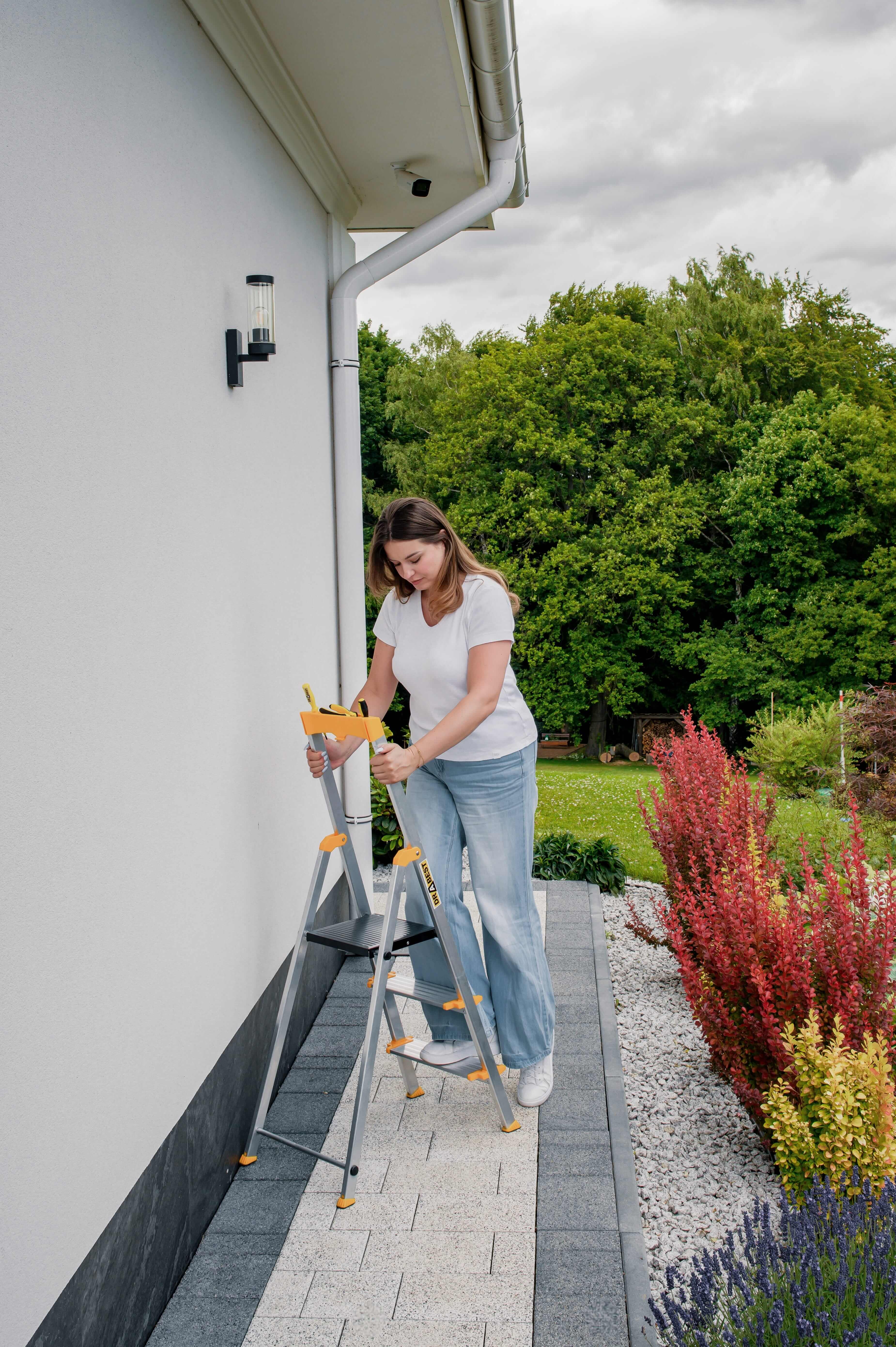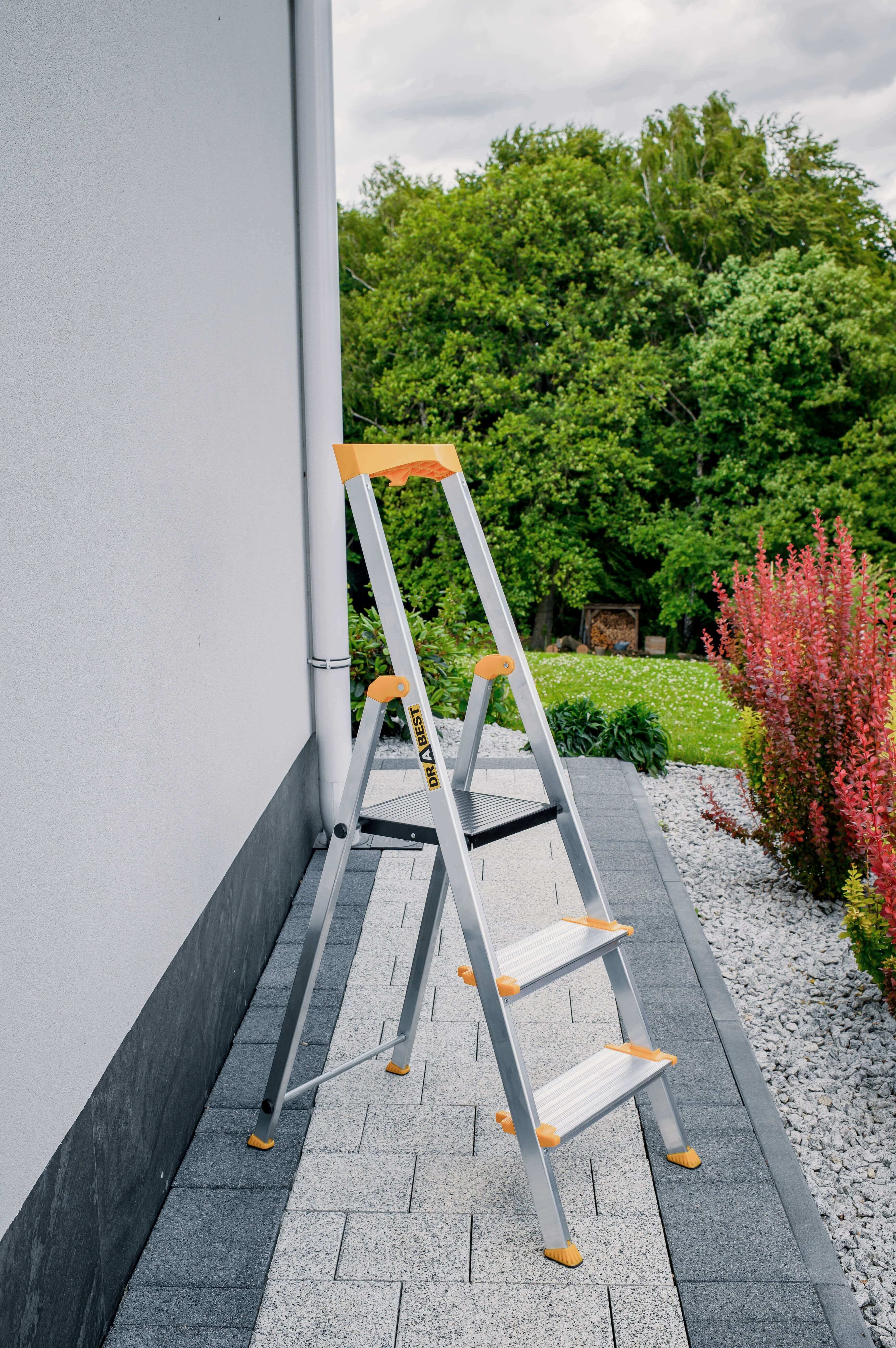 Nasza drabina posiada wyjątkowo szerokie stopnie o szerokości aż 120 mm, podczas gdy standardowo wynoszą one tylko 80 mm! Te szersze stopnie gwarantują niesamowity komfort i stabilne oparcie dla Twoich stóp, co sprawia, że nawet najdłuższa praca na drabinie staje się przyjemnością bez żadnego dyskomfortu. Pierwszy stopień umieszczony na wysokości 190 mm zapewnia łatwe i wygodne wejście na drabinę, umożliwiając szybkie rozpoczęcie pracy.