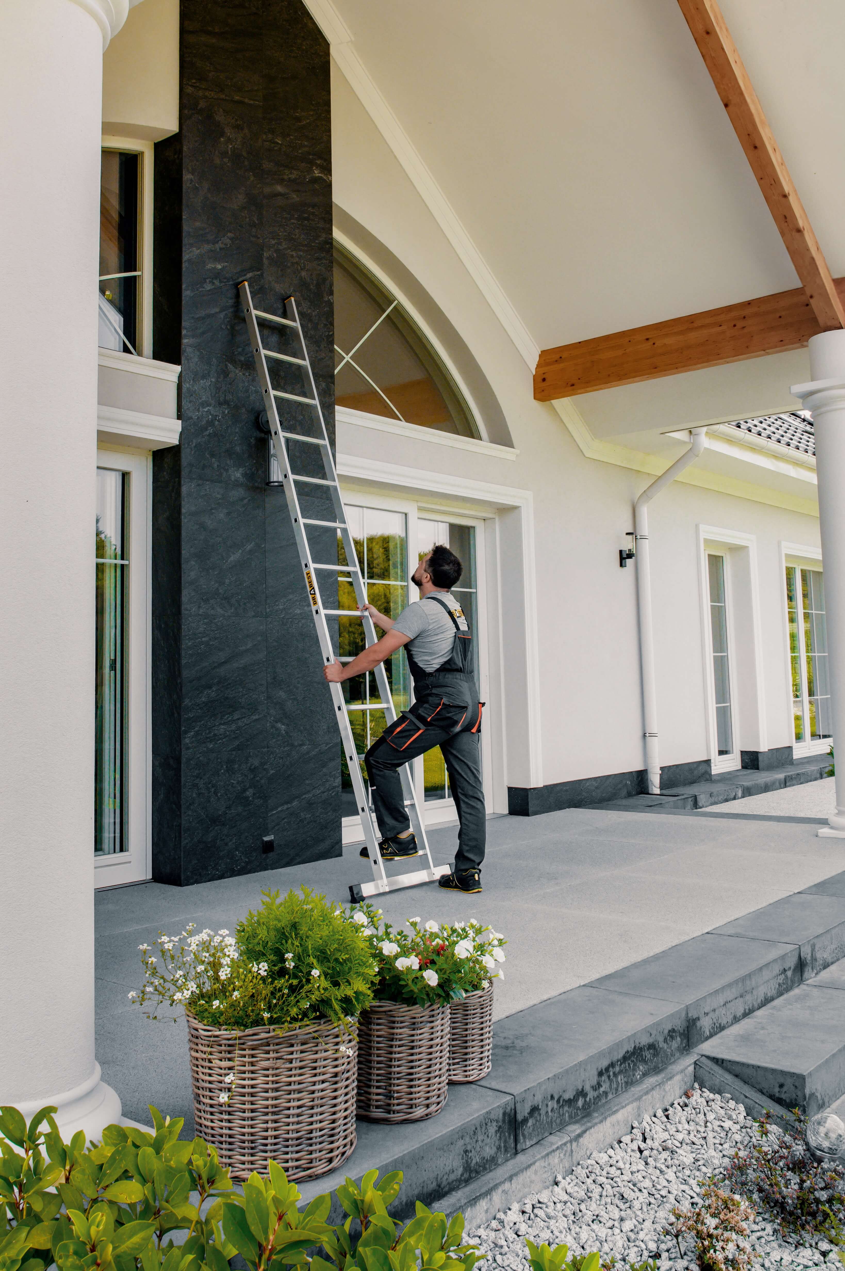 Profesjonalna aluminiowa drabina przystawna, z której korzysta tysiące specjalistów branży technicznej, zajmujących się serwisem urządzeń, remontami czy wykończeniem wnętrz. Parametry drabiny dobrane są tak, by sprawdzić się w pracach na dużych wysokościach.