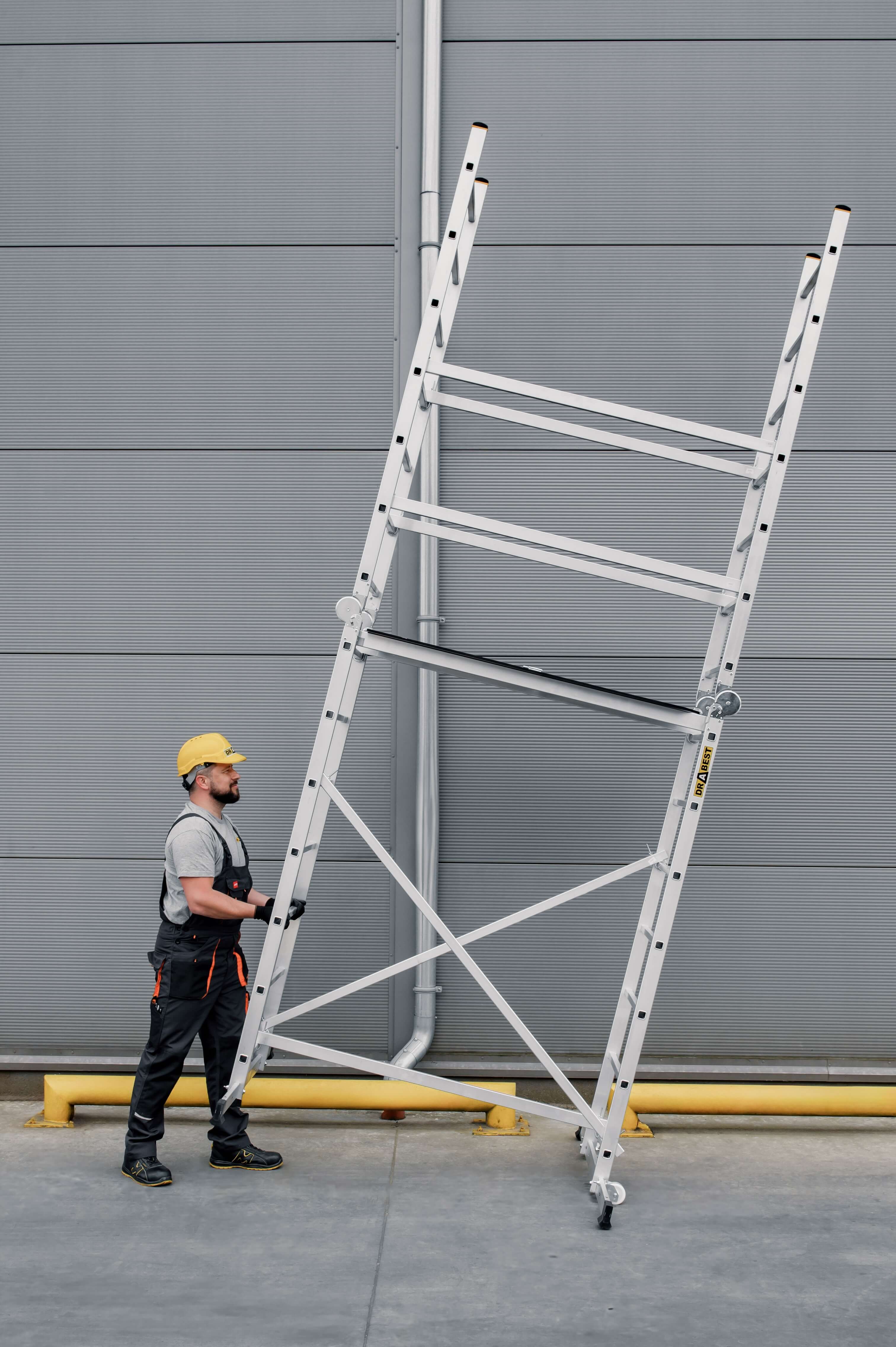 Rusztowania jezdne drabinowe HECTOR to konstrukcja zdecydowanie wielozadaniowa. Oprócz roli rusztowania, jej elementy możemy stosować również jako drabina wolnostojąca, drabina przystawna oraz podesty roboczy. Dzięki zamontowanym kółkom z tworzywa sztucznego bezproblemowo przytransportujesz rusztowanie w dowolne miejsce. Kompaktowe rozmiary po złożeniu również są jego atutem przy przenoszeniu i przechowywaniu. Sprawne rozkładanie i składanie, dzięki funkcjonalnym przegubom. Stabilizator rusztowania Hector jest ruchomy, przez co możesz ustawić dowolną odległość rusztowania od ściany, tak by zapewnić sobie komfort podczas wykonywanej pracy. Konstrukcja rusztowania oraz wszystkich jego konfiguracji drabin, posiada pełną zgodność z europejską normą bezpieczeństwa i wytrzymałości EN 131. Możliwość rozbudowy rusztowania oraz jego funkcji poprzez uzupełniające pakiety dodatkowe, zestawy montażu przyściennego, dodatkowe balasty (10 kg) i wiele innych. Sprawdź w ofercie naszego sklepu internetowego.