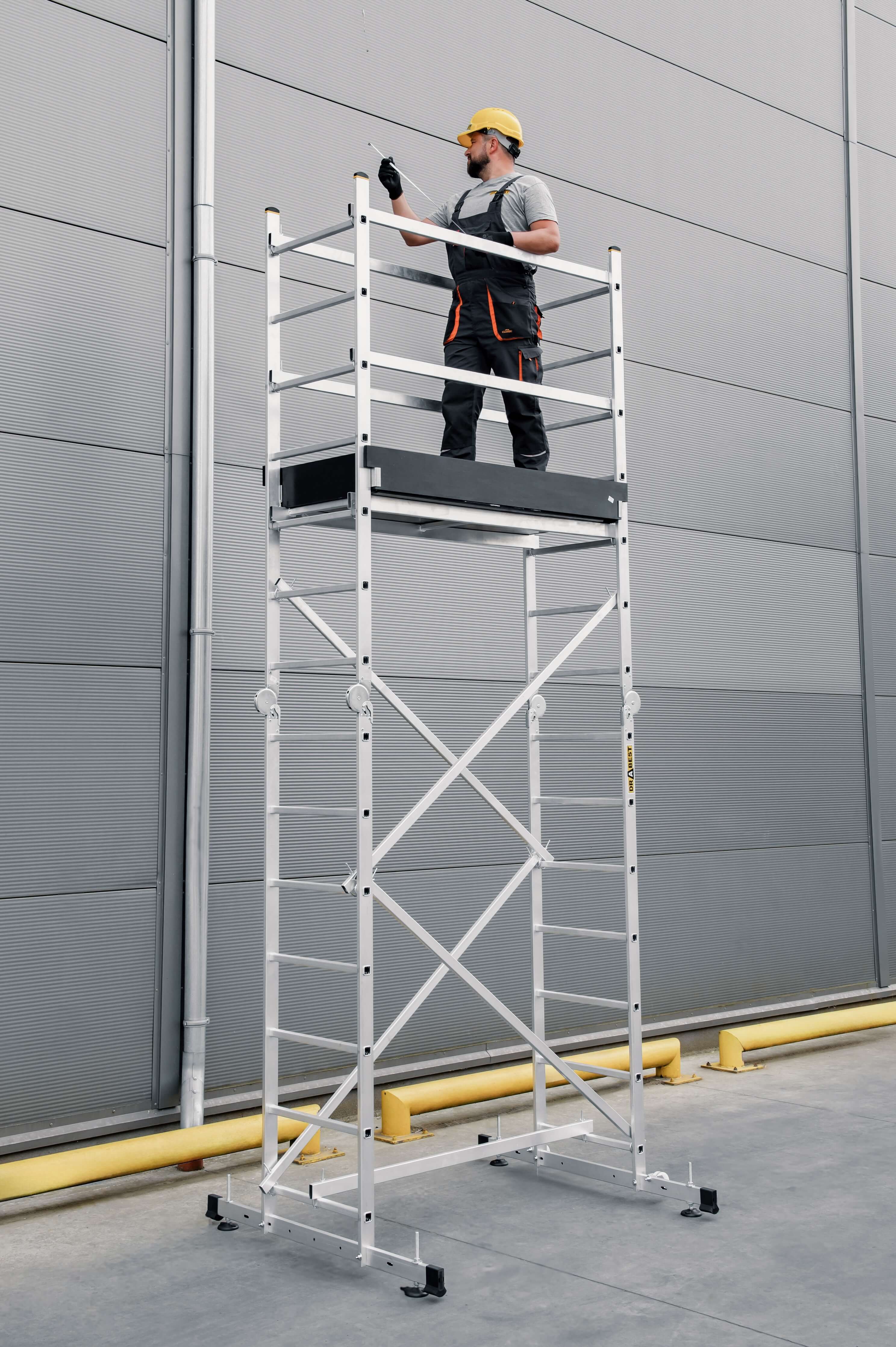 Składa się z dwóch elementów, z których jeden jest uchylny, co zapewnia bezpieczne i komfortowe wejście na rusztowanie.